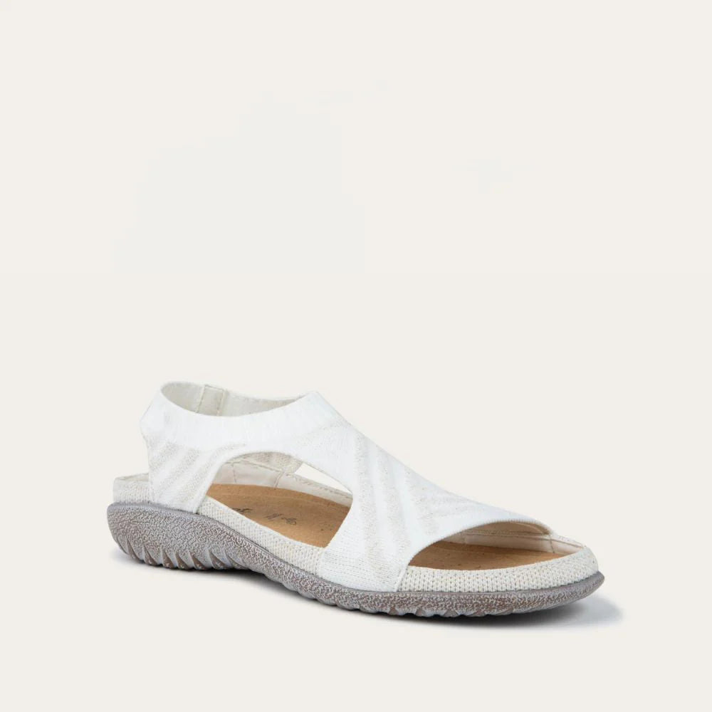 Introducing Kawhia - the ultimate slip-on sandal that blends comfort with sustainable style. Made from vegan knit material, Kawhia offers a breathable and flexible fit. Its minimalist design ensures easy wearability, making it ideal for casual outings or lounging in comfort. Step into Kawhia for a stylish, eco-friendly choice that supports your active lifestyle Crafted with Naot's removable, anatomic cork and latex footbed wrapped in pampering suede, these shoes mold to the shape of your foot with wear, ensuring personalized comfort. The Koru Collection features a 1" polyurethane sole which is extremely lightweight, durable and slip resistant.This collection uses a hand-sewn Strobel construction making it strong and flexible. Plus, it's American Podiatric Medical Association (APMA) accepted for promoting good foot health. Our patented Naot Replacement Footbeds are available for the Kawhia, ensuring extended comfort and support.